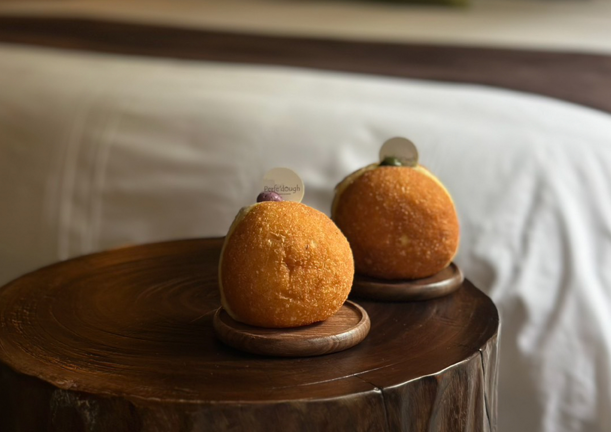 Perfe’dough 堅持手工製作,每一款甜甜圈都保有鬆軟口感與細膩風味。入住期間,甜甜圈口味將 隨機提供,可能遇見的是——